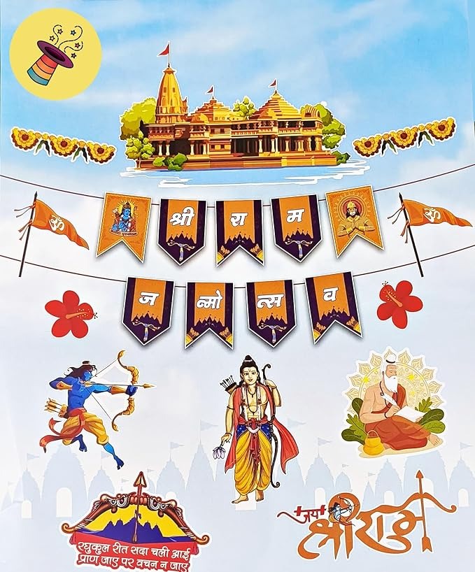 Atpata Funky Ram Navami Decoration Kit – 13 Pcs | Shree Ram Janmotsav Banner in Hindi with Bhagwa Flags, Valmiki, Shri Ram, Ayodhya Ram Mandir & Flower Cutouts for Pooja, Bhajan, Home & Temple Decor