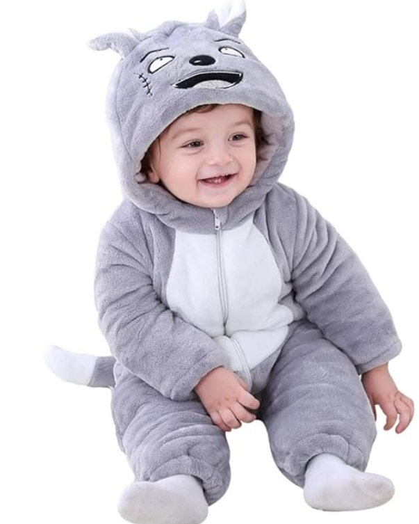 BRANDONN Unisex Baby Flannel Jumpsuit Panda Style Cosplay Clothes Bunting Outfits Snowsuit Hooded Romper Outwear (Grey Scars, 3-6 Months)