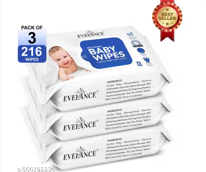 EVELANCE Baby Wipes 72 Sheets pack of 3/Without Lid