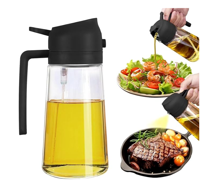 Glass Oil Sprayer and Dispenser Bottle, 500ml Capacity, 2-in-1 Design, Black