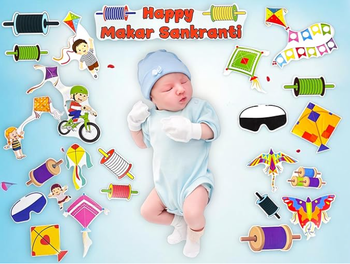 Happy Makar Sankranti Theme Photo Booth Cards/Props for Kids, New Born