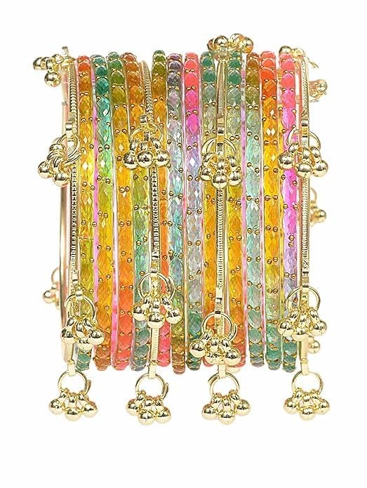 Kashmiri Ghangharoo Glass Bangle Set for Women| Light Weight Bangles | Traditional Transparent Fancy Glass Chudi Set for Wedding, Party(Set Of 18)