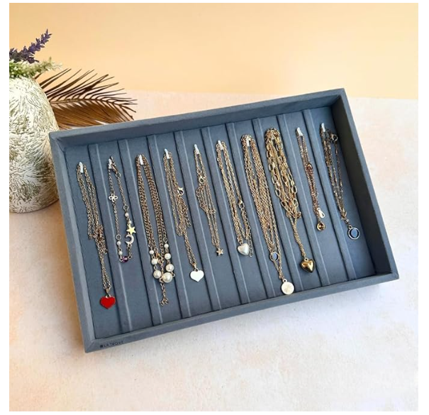 La Trove Premium Bracelet Tray with Hooks to Organize Bracelets and chains | Big Grey