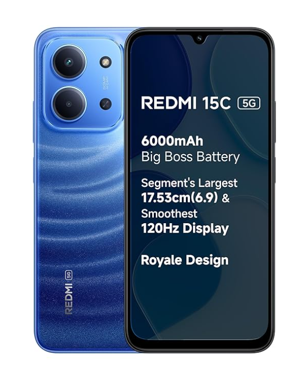 REDMI 15C 5G Moonlight Blue 8GB + 128GB | Royale Design | Massive 6000mAh Battery | Segment’s Largest Display 17.53cm Up to 120Hz | MediaTek Dimensity 6300 | 33W Fast Charging | 50MP AI Dual Camera