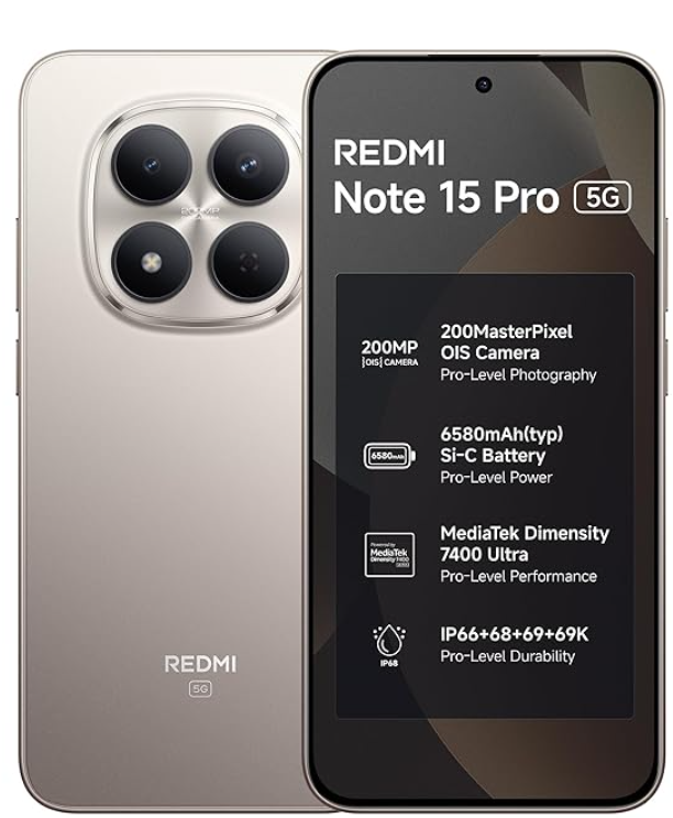 REDMI Note 15 Pro 5G (Silver Ash, 8GB+128GB) | 200MasterPixel OIS Camera | Dimensity 7400-Ultra | 17.3cm CrystalRes AMOLED Screen | IP66/68/69/69K | Mega 6580mAh Si/C Battery | 45W Fast Charging