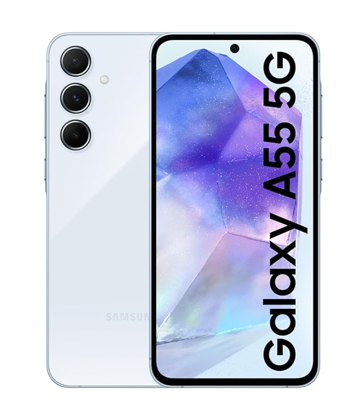Samsung Galaxy A55 5G (Awesome Iceblue, 8GB RAM, 256GB Storage) | AI | Metal Frame | 50 MP Main Camera (OIS) | Super HDR Video| Nightography | IP67 | Corning Gorilla Glass Victus+ | sAMOLED Display