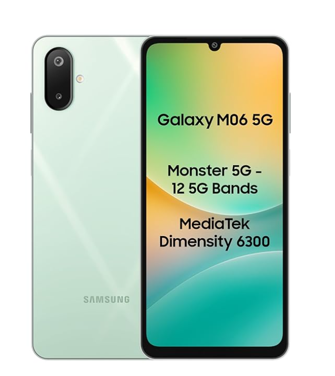 Samsung Galaxy M06 5G Mobile (Sage Green, 4GB RAM, 64GB Storage) | MediaTek Dimensity 6300 | AnTuTu 623K+ | 12 5G Bands | 25W Fast Charging | 4 Gen OS Upgrades | 50MP Camera | Without Charger