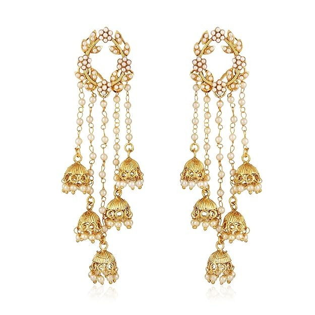 Shining Diva Fashion Gold Plated Stylish Pearl Jhumka Jhumki Traditional Earrings for Women and Girls (Golden) (8630er)