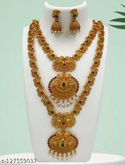Be the first to review “South Indian Bridal Double Necklace With Earring Jewellery Set For Indian Bride”