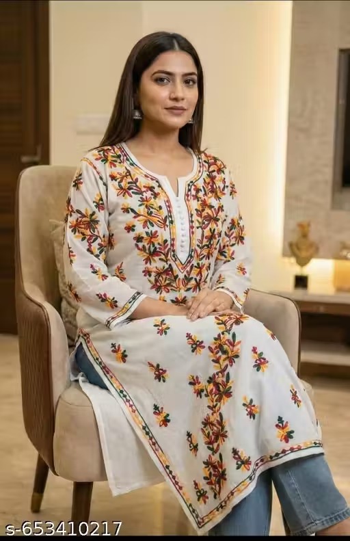 Women Rayon Straight Embroidered Lucknowi Chikankari Kurta Kurti